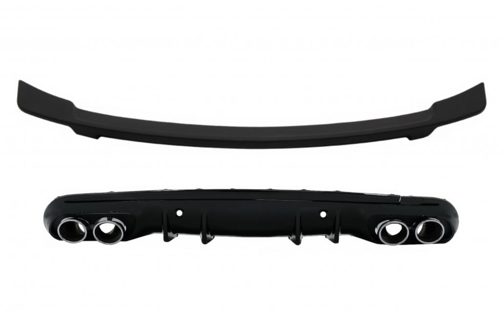 Rear Bumper Diffuser with Exhaust Muffler Tips and Trunk Spoiler Matte Black suitable for Mercedes C-Class W205 S205 AMG Sport Line (2014-2020) C43 Design