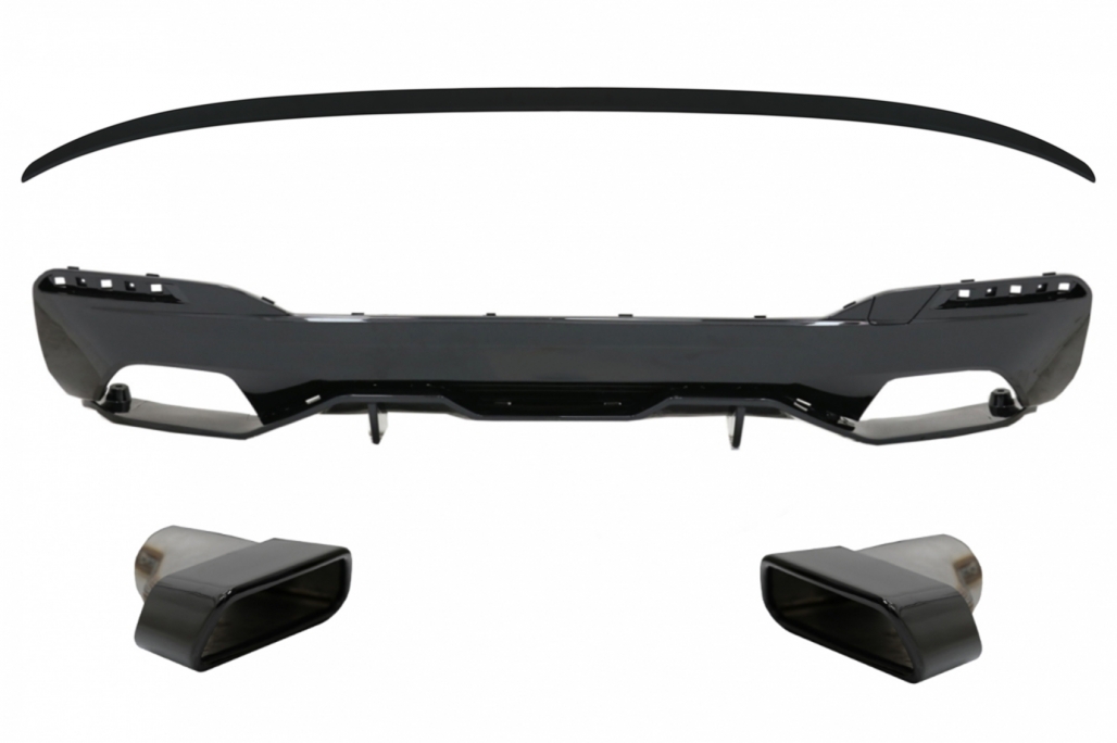 Rear Bumper Diffuser with Exhaust Muffler Tips Black and Trunk Boot Spoiler suitable for BMW 5 Series G30 Limousine (2017-2019) M Performance Design