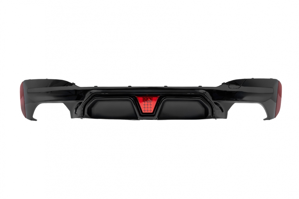 Rear Bumper Diffuser with LED suitable for BMW 5 Series G30 G31 Limousine Touring (2017-2024) M5 Design Piano Black