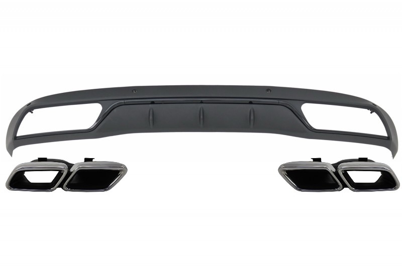 Rear Bumper Diffuser with Muffler Tips suitable for Mercedes C-Class W205 S205 (2014-2018) C63 Look Shadow Black and Chrome for Standard Bumper