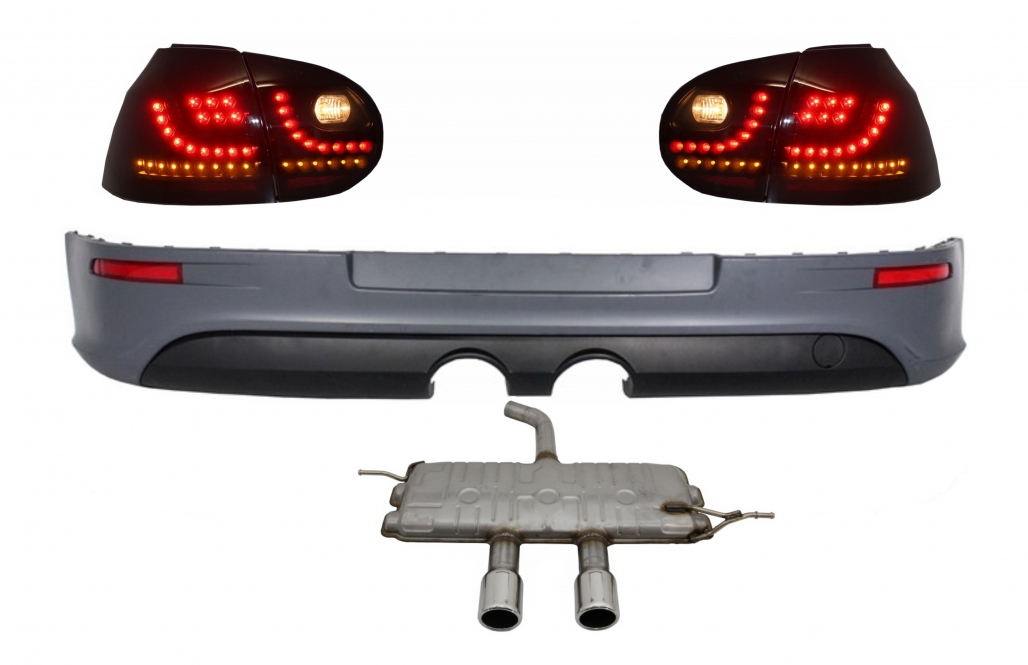 Rear Bumper Extension with Taillights LED Smoke Black and Complet Exhaust System suitable for VW Golf 5 V (2003-2007) R32 Look