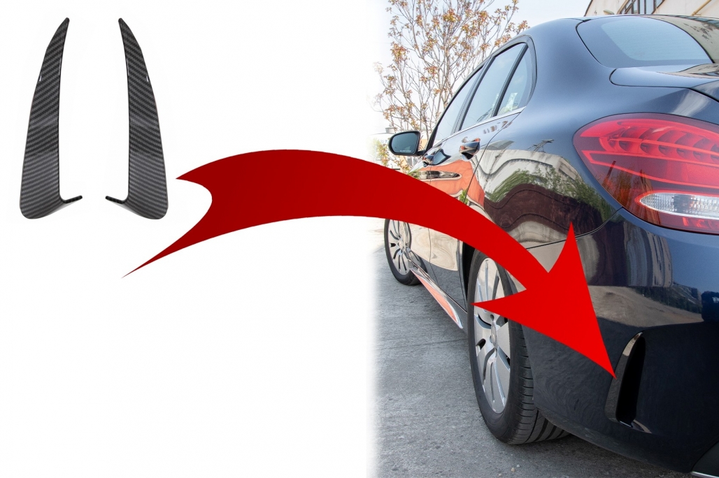 Rear Bumper Flaps Side Fins Flics suitable for Mercedes C Class W205 (2014-2020) Carbon Film