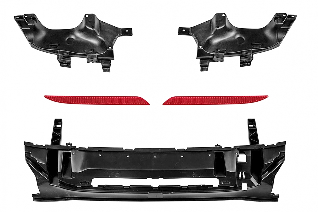 Rear bumper equipped with air diffuser with double outlet for twin exhaust PDC holders and rear molding spoiler.