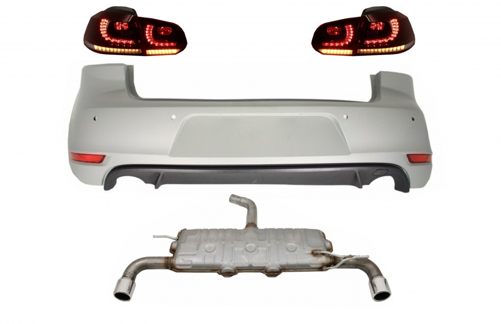 Rear Bumper suitable for VW Golf 6 VI (2008-2012) with Exhaust System and Taillights FULL LED Dynamic Sequential Turning Light GTI Design