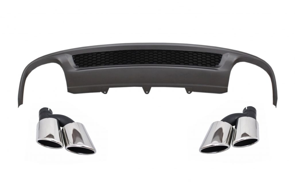 Rear Bumper Valance Air Diffuser suitable for Audi A4 B8 Facelift Limousine/Avant (2012-2015) with Exhaust Muffler Tips Tail Pipes S-Line Design only Standard Bumper
