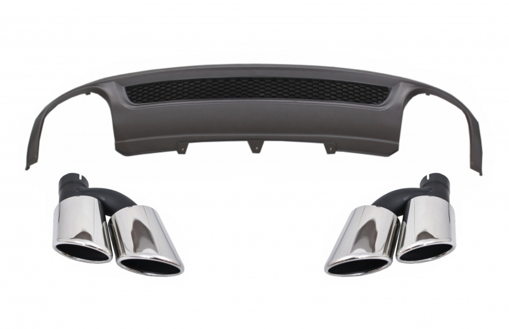 Rear Bumper Valance Air Diffuser suitable for Audi A4 B8 Pre Facelift Limousine Avant (2008-2011) with Exhaust Muffler Tips Tail Pipes S-Line Design only Standard Bumper