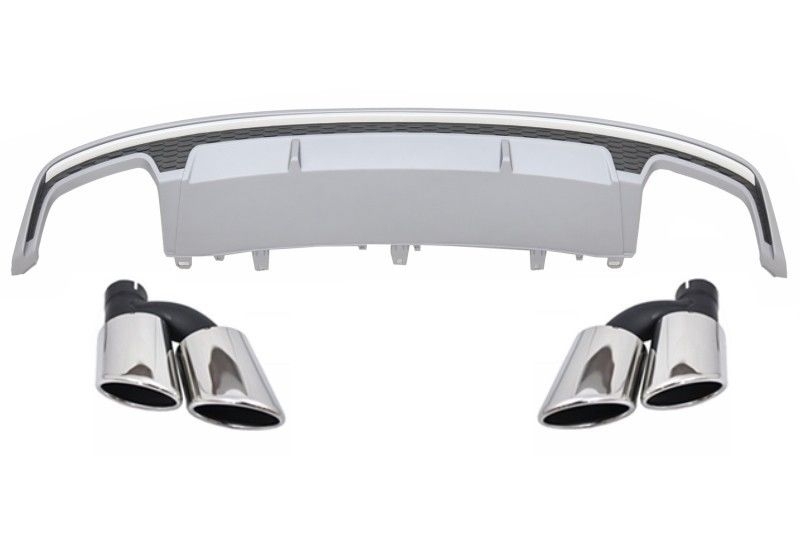 Rear Bumper Valance Air Diffuser with Exhaust Muffler Tips suitable for Audi A7 4G Facelift (2015-2018) S7 Design Only Standard Bumper