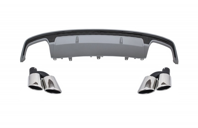 Rear Bumper Valance Air Diffuser with Exhaust Muffler Tips Tail Pipes suitable for AUDI A7 4G Facelift (2015-2018) S7 Design