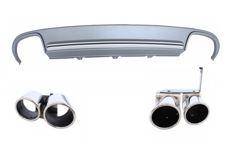 Not suitable for vehicles with double exhaust exhaust tips right is only for design it is not functional.DescriptionRear Bumper Air Diffuser S4 Design crafted in high quality ABS plastic equipped with double exhaust outlets with 304 stainless steel muffler tips.