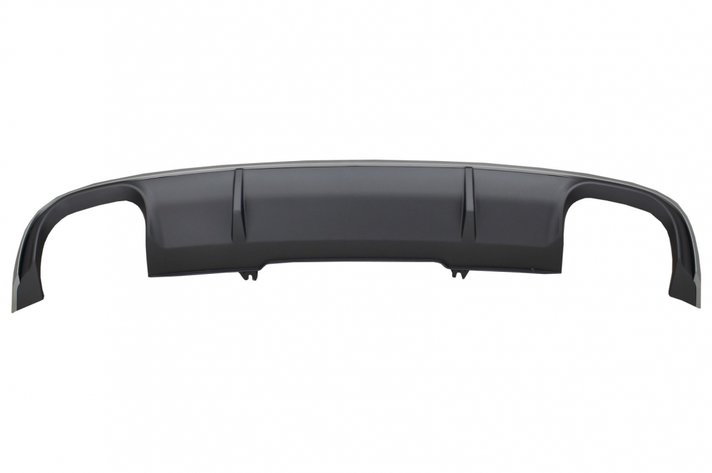 Rear diffuser crafted in high-quality ABS plastic equipped with twin outlets for double exhaust .