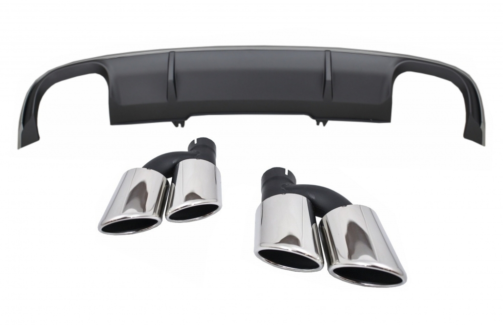 Rear Bumper Valance Diffuser suitable for Audi A4 B9 8W Sedan/Avant (2016-2018) with Exhaust Muffler Tips Tail Pipes S4 Design For Standard Edition Grey