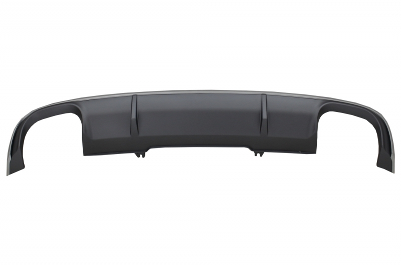 Rear diffuser crafted in high-quality ABS plastic equipped with twin outlets for double exhaust .