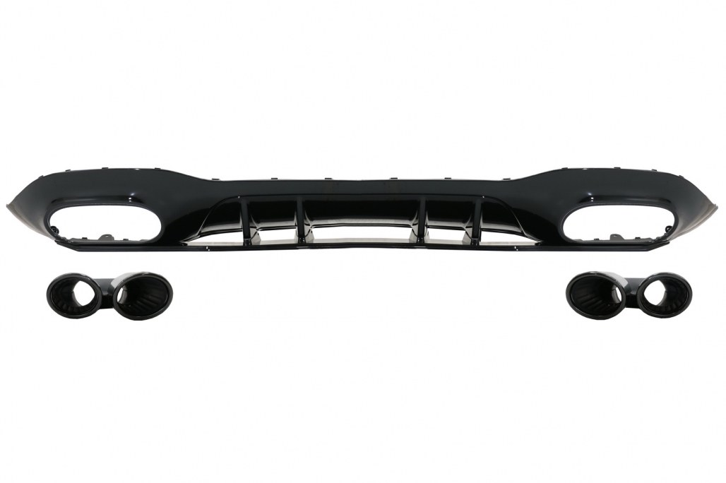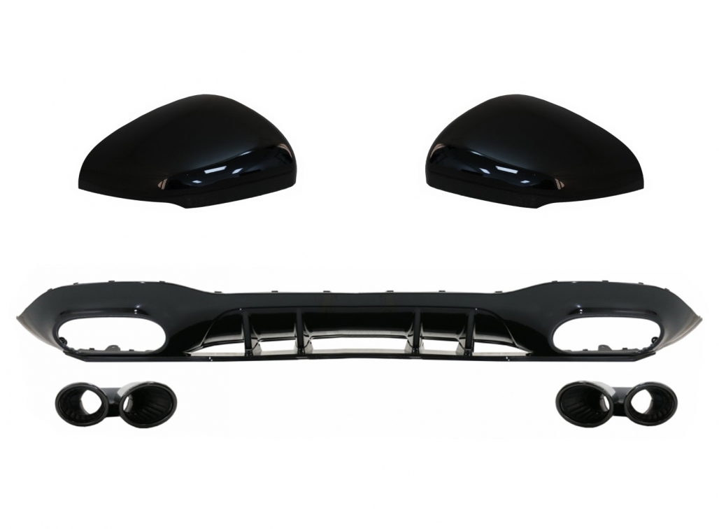 Rear Bumper Valance Diffuser with Black Exhaust Tips and Mirror Cover suitable for Mercedes A-Class V177 Hatchback (05.2018-2022)