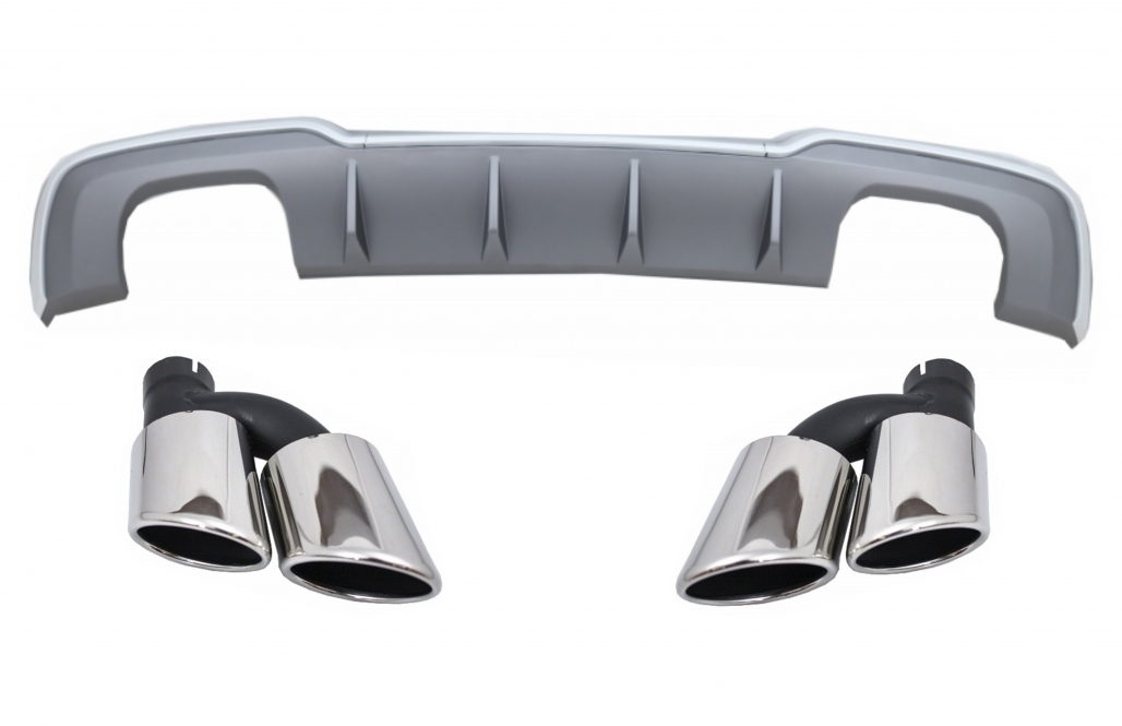 Rear Bumper Valance Diffuser with Exhaust Muffler Tips suitable for Audi A3 8V Facelift (2016-2019) S-Line Bumper Hatchback Sportback S3 Design