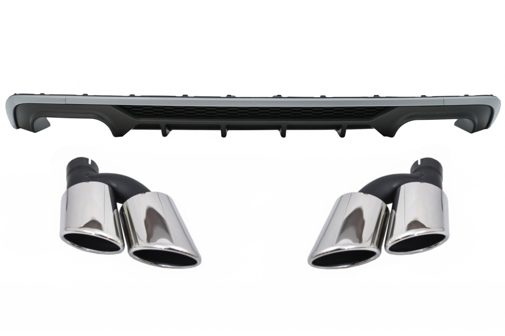 Rear Bumper Valance Diffuser with Exhaust Muffler Tips Tail Pipes suitable for Audi A3 8V Facelift Hatchback Sportback (2016-2019) Standard Bumper (SE) S3 Design