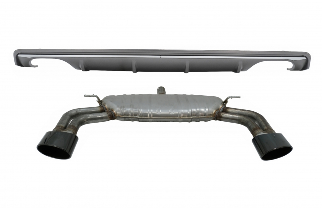 Rear Bumper Valance Diffuser with Exhaust System Piano Black suitable for Audi A3 8V Sedan (2012-2015) S3 Design only for Standard bumper