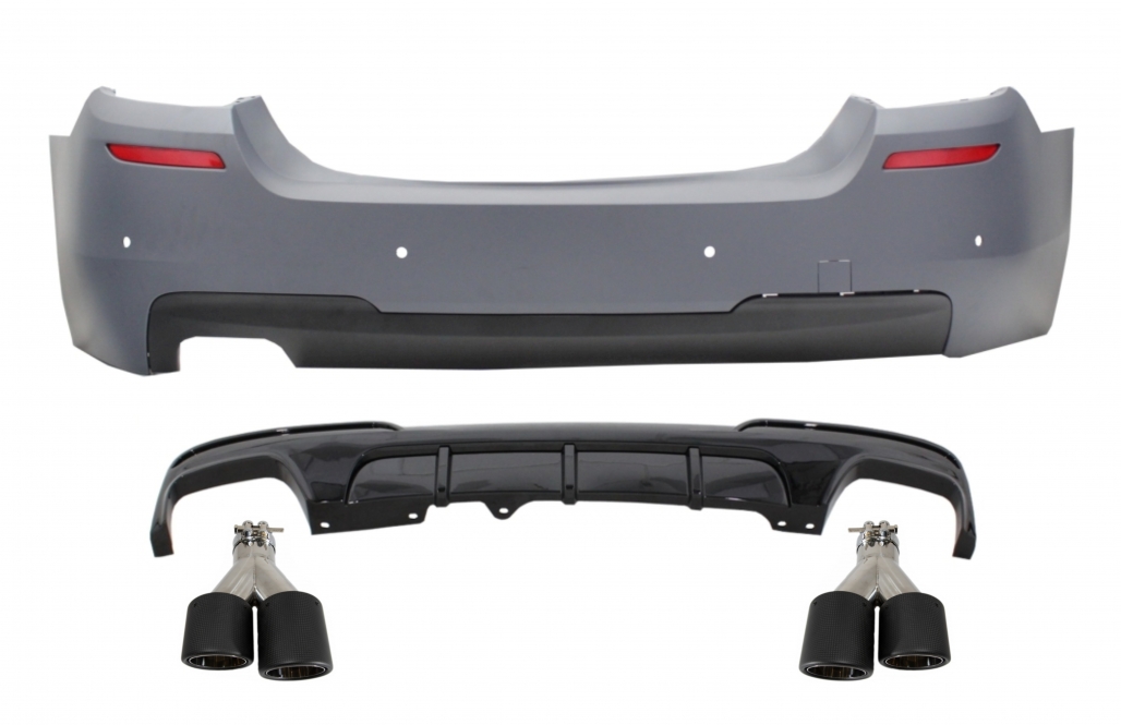 Rear Bumper with Diffuser and Dual Twin Exhaust Tips Carbon suitable for BMW 5 Series F10 (2011-2017) M-Performance Design