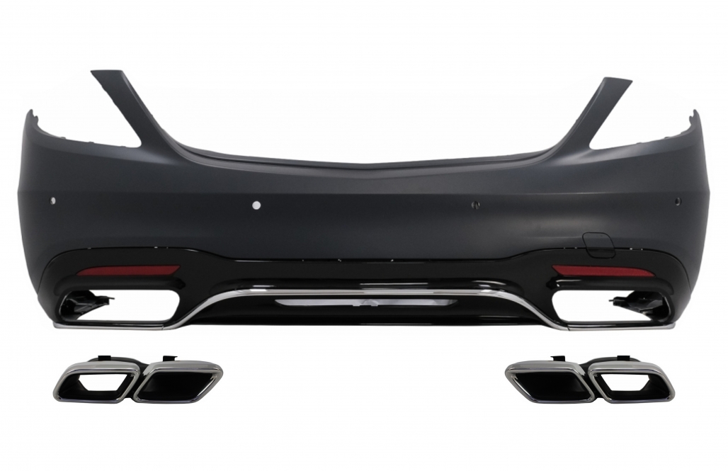 Rear Bumper with Diffuser and Exhaust Muffler Tips Chrome suitable for Mercedes S-Class W222 Facelift Sedan (07.2017-08.2020) S63 Design