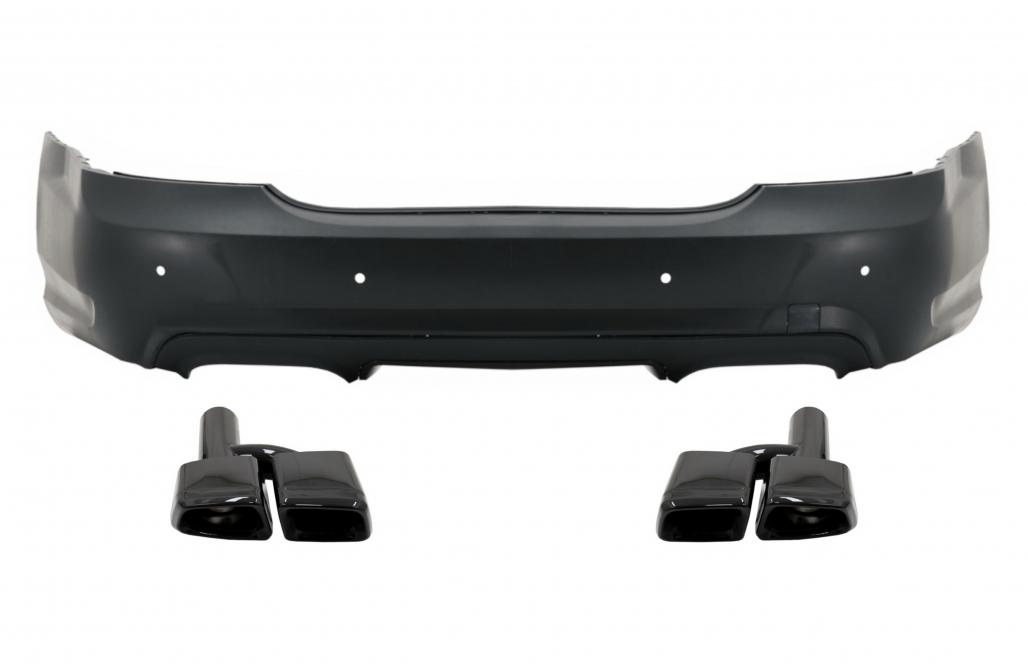 Rear Bumper with Exhaust Muffler Tips Black suitable for Mercedes S-Class W221 (2005-2013) with PDC S65 Design