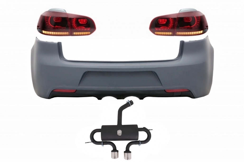 Rear Bumper with Exhaust System and Taillights Full LED suitable for VW Golf 6 VI (2008-2013) R20 Design Red Cherry with Sequential Dynamic Turning Lights (LHD and RHD)