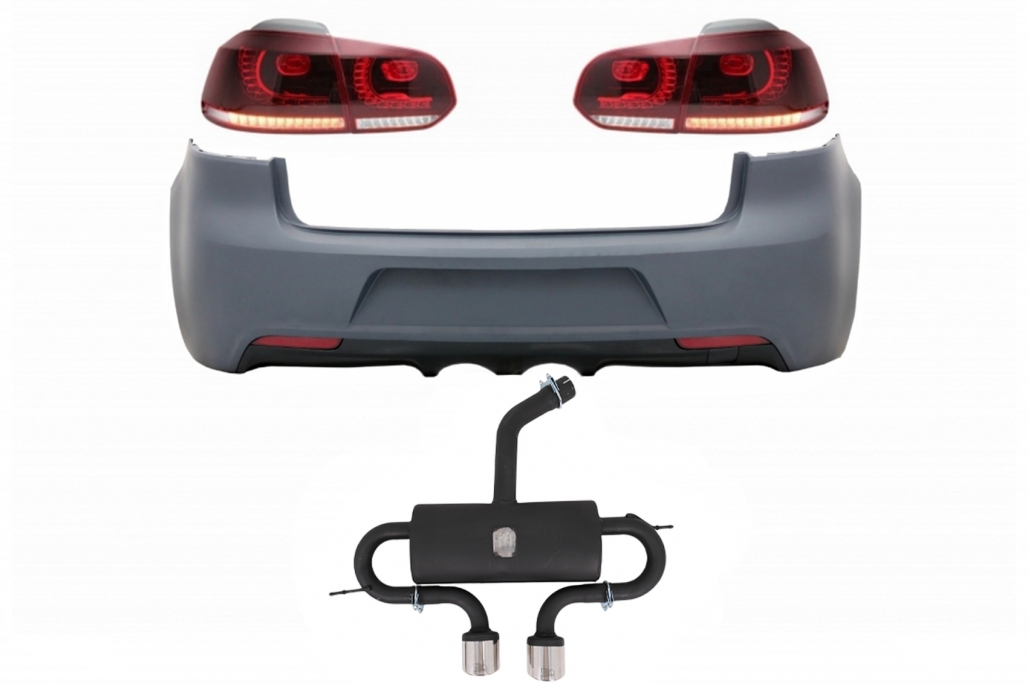 Rear Bumper with Exhaust System and Taillights Full LED suitable for VW Golf VI (2008-2013) R20 Design Cherry Red (LHD and RHD)