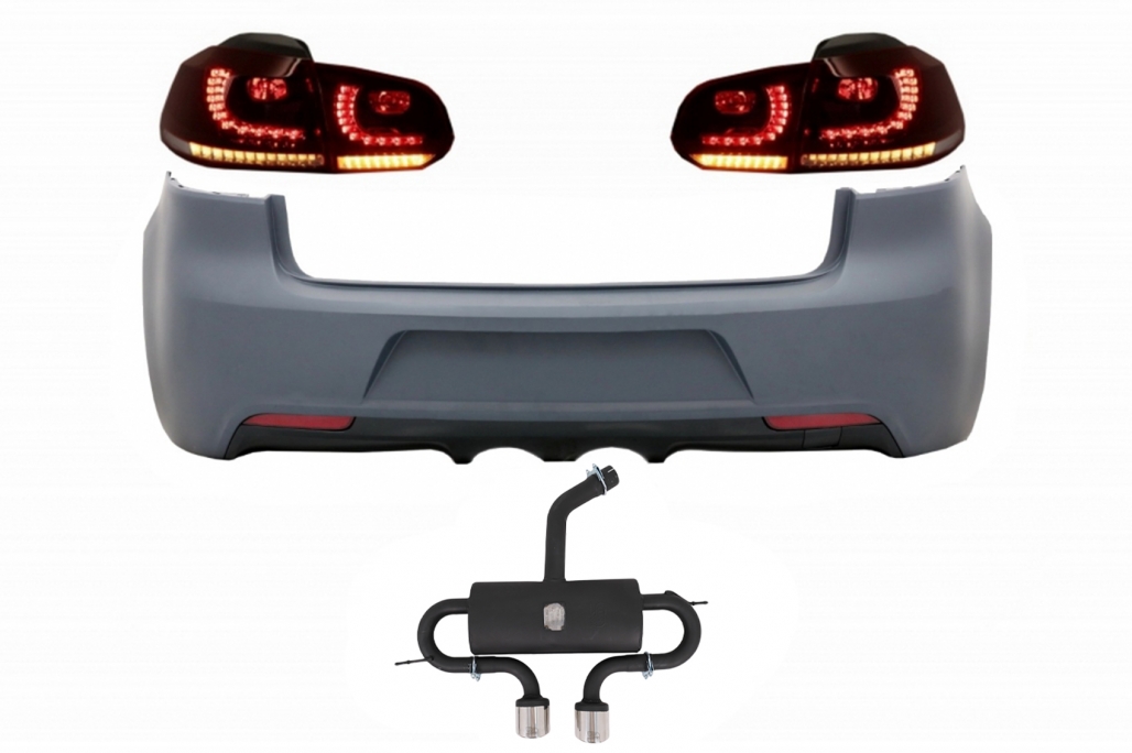 Rear Bumper with Exhaust System and Taillights Full LED suitable for VW Golf VI (2008-2013) R20 Design Dynamic Sequential Turning Light (LHD and RHD)