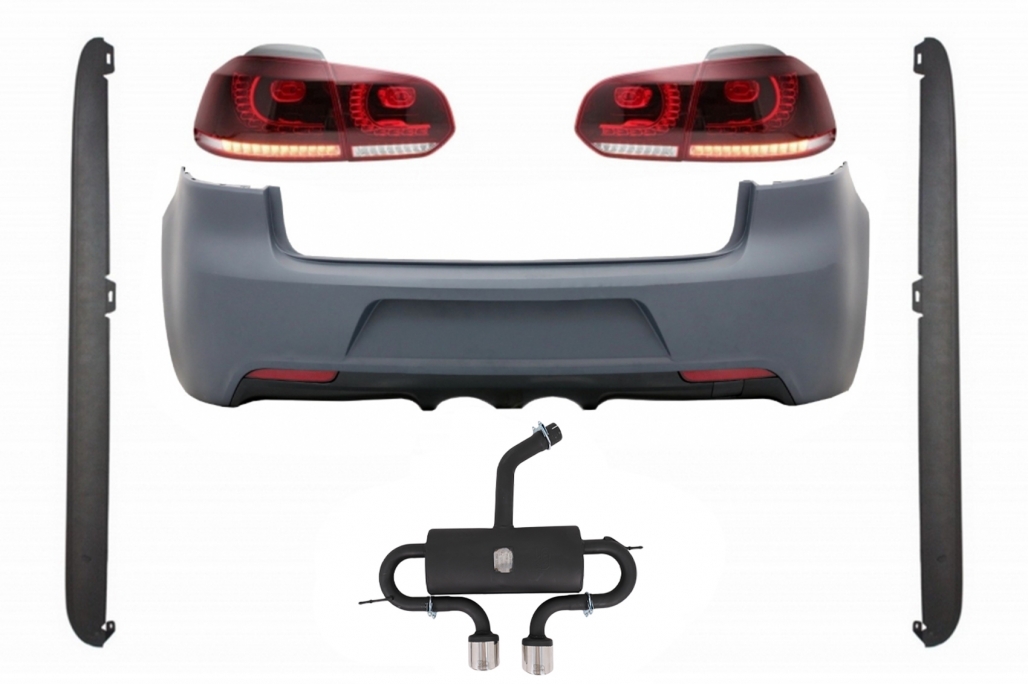 Rear Bumper with Exhaust System suitable for VW Golf VI (2008-2013) R20 Design Taillights Full LED Cherry Red (LHD and RHD) and Side Skirts