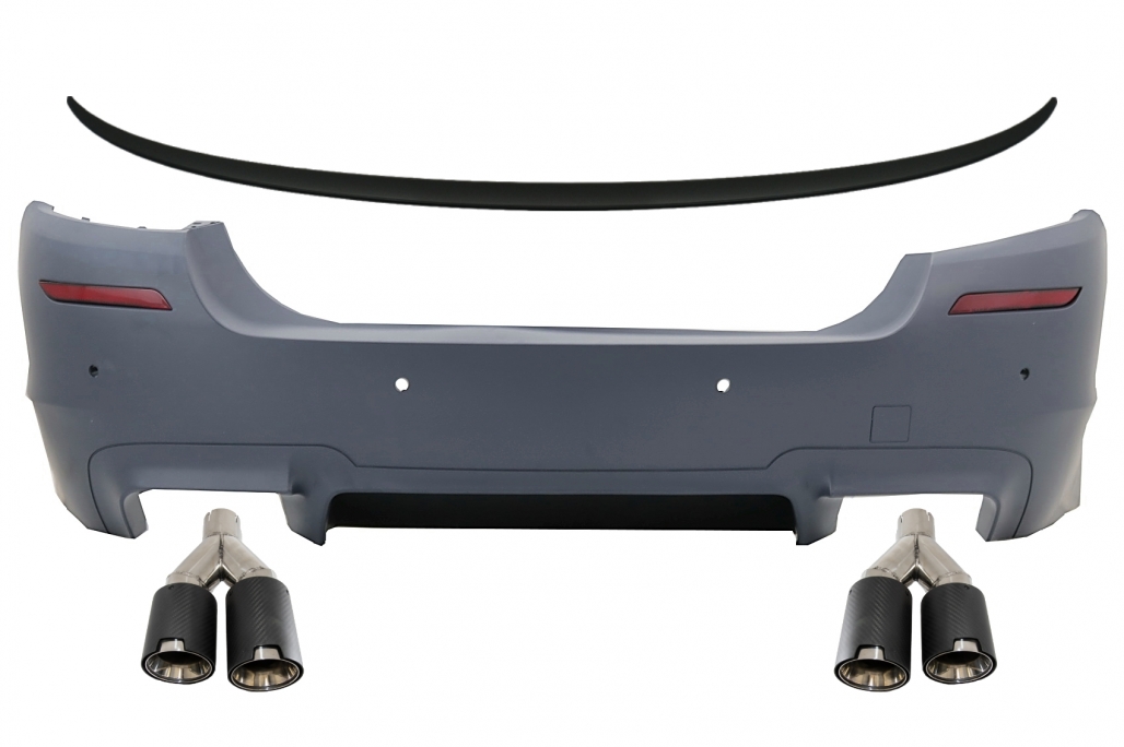 Rear Bumper with Trunk Spoiler and Exhaust Muffler Tips Carbon Fiber Matte suitable for BMW 5 Series F10 (2011-2017) M5 Design