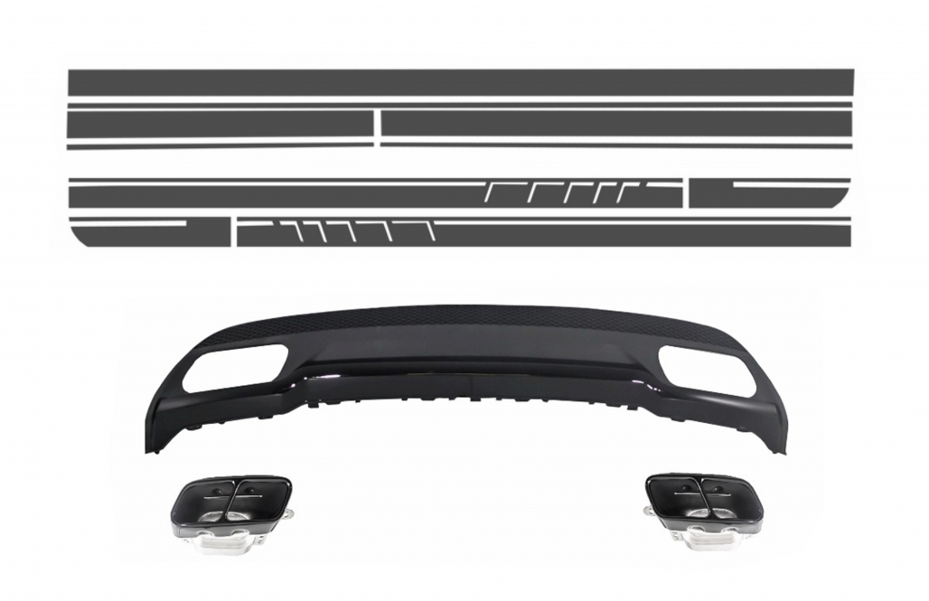 Rear Diffuser and Exhaust Tips Tailpipe suitable for Mercedes A-Class W176 (2012-up) Sport Pack with Side Decals Sticker Vinyl Dark Grey