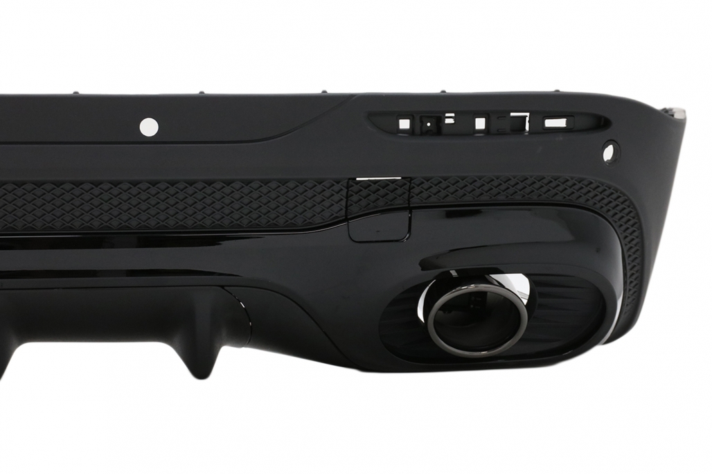 IntroThis rear bumper diffuser with exhaust tips improves your vehicle’s exterior styling. An aggressive look to your car.Suitable forMercedes GLB X247 SUV (2020-up) with PDCNot suitable forMercedes GLB with towing systemDescriptionRear Bumper Air Diffuser