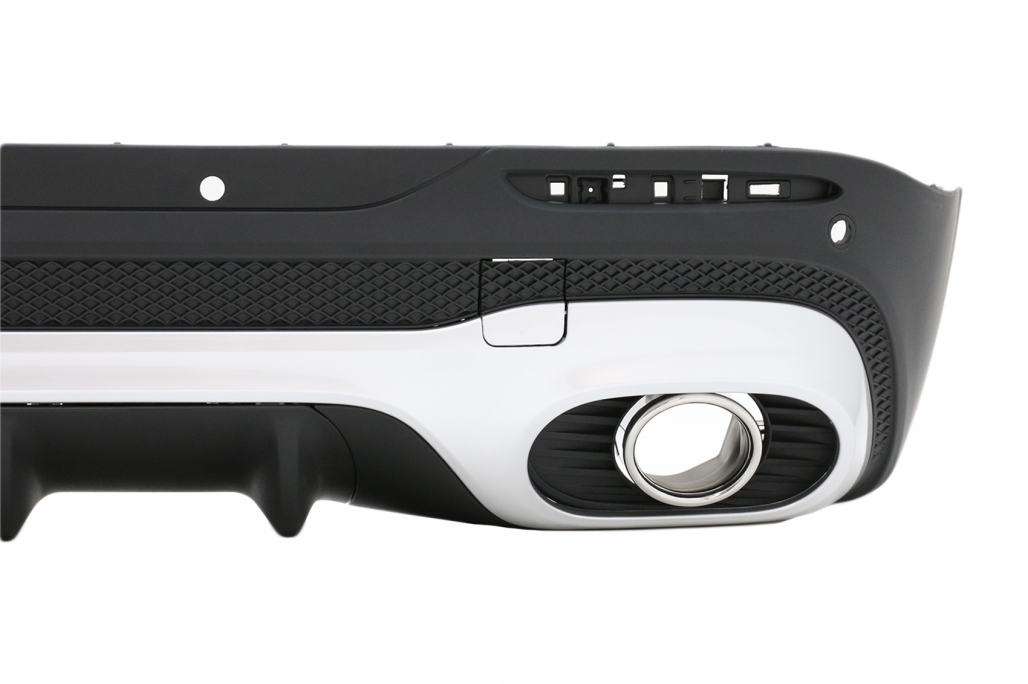 IntroThis rear bumper diffuser with exhaust tips improves your vehicle’s exterior styling. An aggressive look to your car.Suitable forMercedes GLB X247 SUV (2020-up) with PDCNot suitable forMercedes GLB with towing systemDescriptionRear Bumper Air Diffuser
