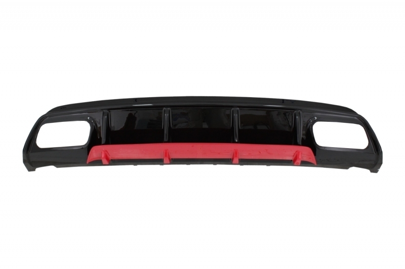 Rear Diffuser with Exhaust Muffler Tips Black and Splitters Fins suitable for Mercedes A-Class W176 Facelift (2015-2018) A45 Design Red Edition