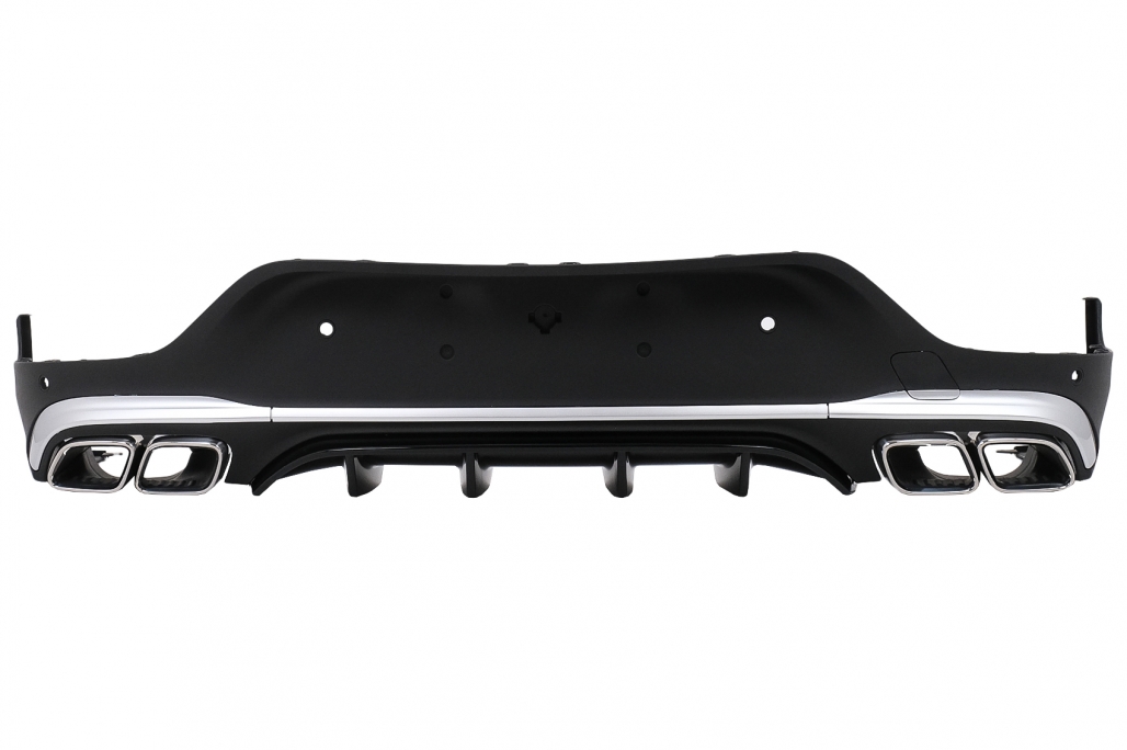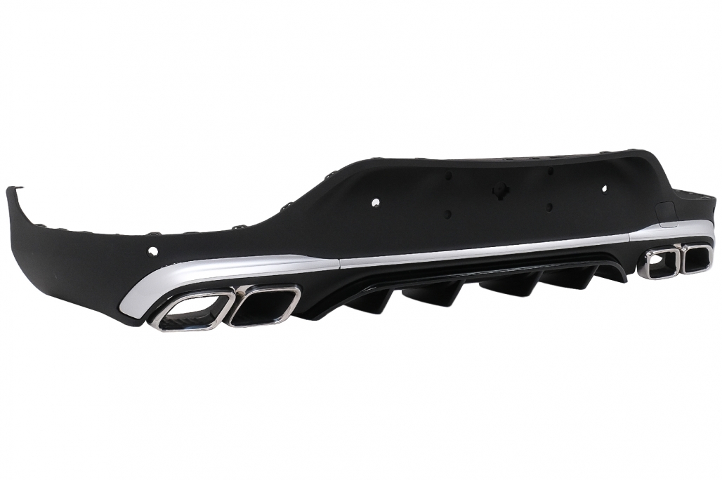 Rear Diffuser with Exhaust Silver Muffler Tips suitable for Mercedes GLC Coupe Facelift C253 (2020-) GLC63 Design