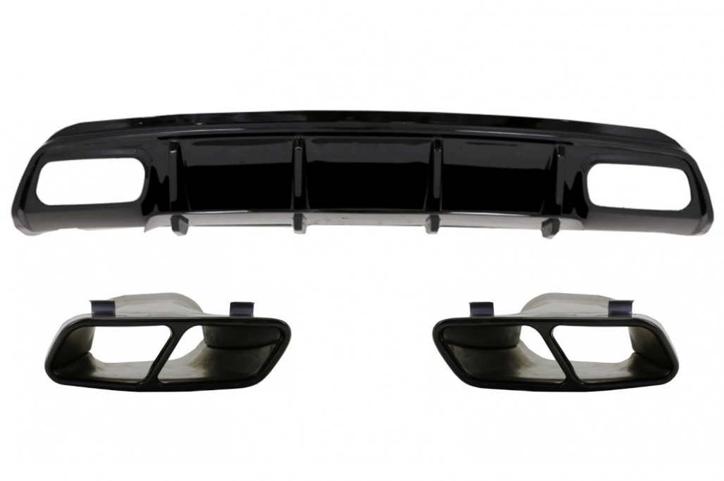 Rear Diffuser with Muffler Tips Black suitable for Mercedes A-Class W176 (2012-2015) A45 Facelift Design