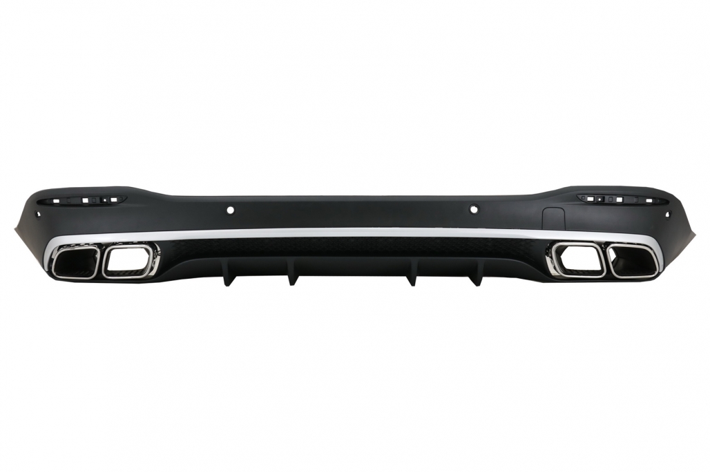 Rear Diffuser with Silver Exhaust Muffler Tips suitable for Mercedes GLE W167 SUV V167 Sport Line (2019-Up) GLE 63 Design