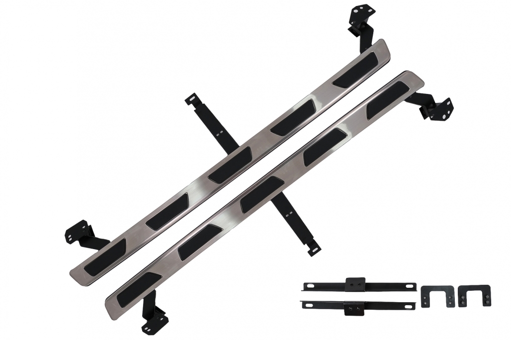 IntroStylish and functional running boards ease your entry and exit while providing a rugged element of design. Grippy rubber studs dot the running boards for a surer step even in inclement weather.Suitable forAudi Q7 4M (2016-2019)DescriptionRunning boards side steps made of high quality stainless steel aluminium and PVCFitting and InstallationFitting instructions not included.