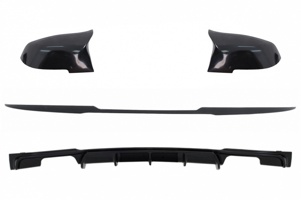 Trunk Boot Lip Spoiler with Rear Bumper Spoiler Valance Diffuser Double Outlet and Mirror Covers suitable for BMW 3 Series F30 (2011-2019) M4 CSL Performance Design Piano Black