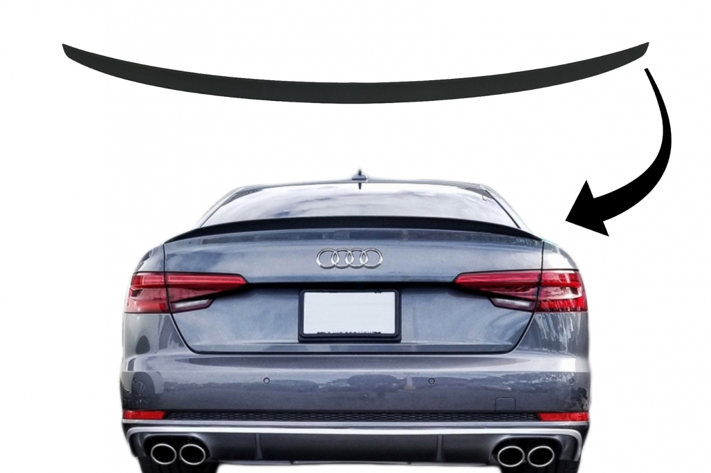 IntroThe new trunk spoiler is meant to add a sporty touch and improve aerodynamics on your Audi A4.Suitable forAudi A4 B9 Sedan (2016-Up)Not suitable forAudi A4 B9 Avant (2016-Up)DescriptionTrunk spoiler made from high-quality ABS plastic.